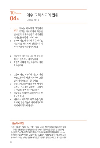 ④ 예수가 계시는 보좌는 영광에 둘려 있도다 평화의 왕이 오시니 그 나라 왕성하도다