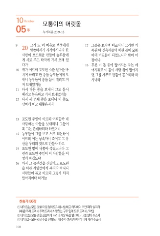 10 때가 이르매 포도원 소출 얼마를 바 어지겠고 이 돌이 사람 위에 떨어지