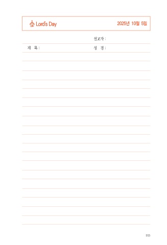 Lord's Day 2025년 10월 5일 설교자 : 제 목 : 성 경 : 103