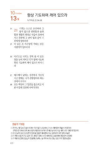 ① 주 어느 때 다시 오실는지 아는 이가 없으니 등 밝히고 너는 깨어있어 주를 반겨 맞으라