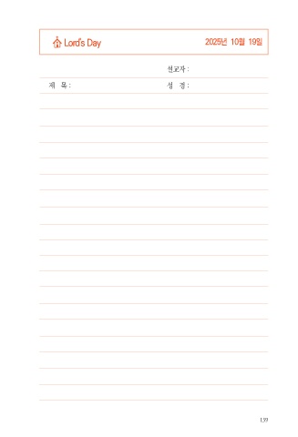 Lord's Day 2025년 10월 19일 설교자 : 제 목 : 성 경 : 139