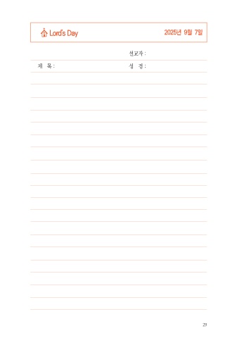 Lord's Day 2025년 9월 7일 설교자 : 제 목 : 성 경 : 29