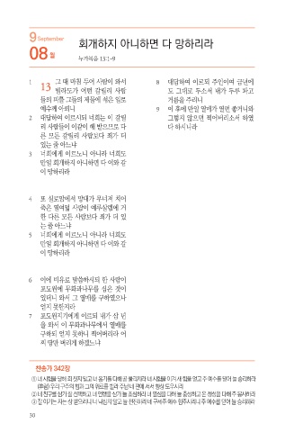 1       그 때 마침 두어 사람이 와서             8   대답하여 이르되 주인이여 금년에