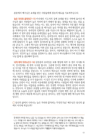 말하는 것입니다. 이러한 모습을 본 예수님은 높은 자리를 찾는 바리새인들의 교만