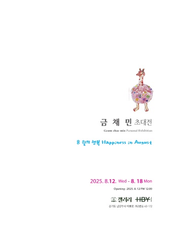 금 채 민 초대전 Geum chae min Personal Exhibition 8 월의 행복 Happiness in August 2025. 8.12. Wed - 8. 18 Mon Opening : 2025. 8. 12 PM 12:00 갤러리 경기도 남양주시 비룡로 782번길 43-172