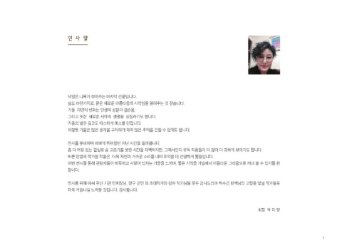좀 더 여유 있는 결실로 숨 고르기를 못한 시간을 자책하지만, 그래서인지 유독 작품들이 더 많이 더 귀하게 보이기도 합니다.
