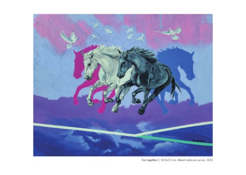 Fun together C 90.9x72.7cm Mixed media on canvas 2025