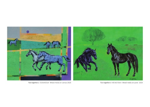 Fun together a 53.0x45.5cm Mixed media on canvas 2025 Fun together d 40.9x31.8cm Mixed media on panel 2024