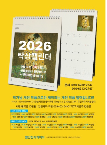 작가님 개인 작품으로만 제작되는 개인 작품 달력입니다!!