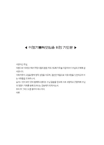 ◀ 이화가톨릭모임을 위한 기도문 ▶ 사랑이신 주님, 아름다운 이화동산에서 학창시절의 꿈을 키워가도록 저희를 이끌어주신 주님의 은혜에 감 사합니다. 이화가톨릭 모임을 통해 영적 성장을 이루며, 겸손한 마음으로 이웃사랑을 실천하고자 하 는 저희들을 도와주소서. 둘이나 셋이 모인 곳에 함께하시겠다는 주님 말씀을 믿으며 서로 사랑하고 존중하며 주님 의 영광이 저희를 통해 드러나는 공동체가 되게 하소서. 우리 주 그리스도를 통하여 비나이다. 아멘.