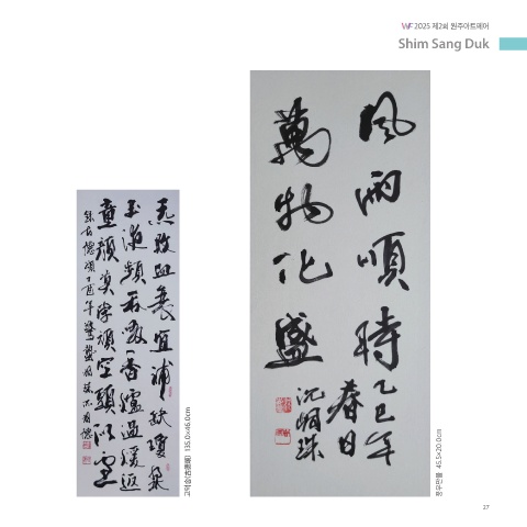 2025 제2회 원주아트페어 Shim Sang Duk 고덕송(古德頌) 135.0×46.0cm 풍우만물 45.5×20.0cm 27