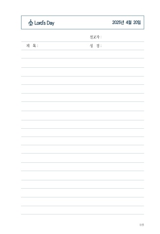 Lord's Day 2025년 4월 20일 설교자 : 제 목 : 성 경 : 145