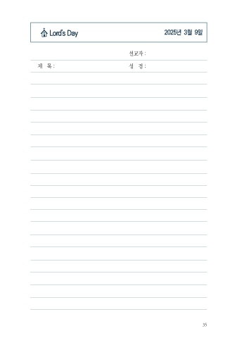 Lord's Day 2025년 3월 9일 설교자 : 제 목 : 성 경 : 35