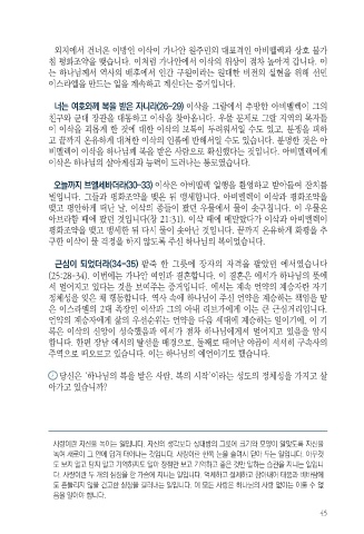 언약의 계승자에게 삶의 우선순위는 언약을 다음 세대에 계승하는 일이기에, 이 기