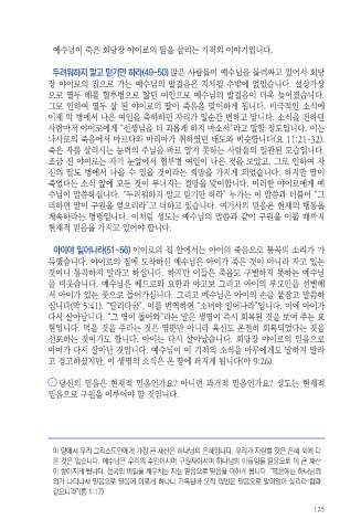 십니다(막 5:41). “달리다굼”, 이를 번역하면 “소녀야 일어나라”입니다. 이에 아이가