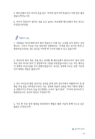 5. 예수님께서 죽은 아이의 손을 잡고 “아이야 일어나라”하셨더니 어떤 일이 벌어