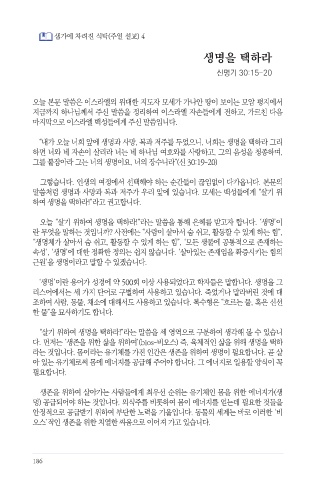 “살기 위하여 생명을 택하라!”라는 말씀을 세 영역으로 구분하여 생각해 볼 수 있습니