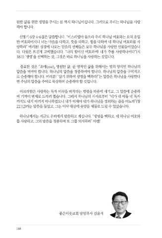 로 순종해야 합니다. 여러분! “살기 위하여 생명을 택하라!”는 말씀은 하나님을 사랑한다