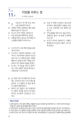 28 시므온이 아기를 안고 하나 38 마침 이 때에 나아와서 하나님께