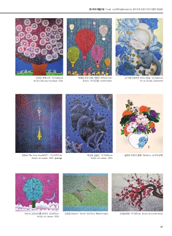 김수민_축복나무 72.7x60.6cm 박미량_온누리에 사랑이 90.9x72.7cm 김기애_지혜로운 하모니 환생 72.7x60.6cm