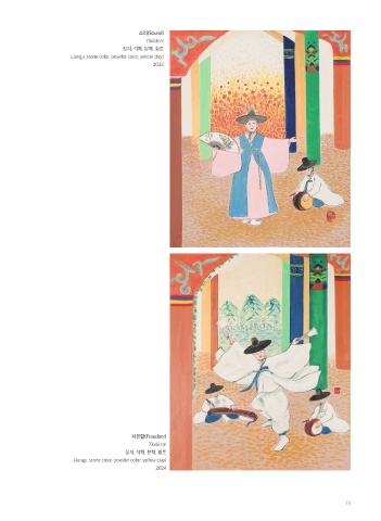 소리(Sound) 73x61cm 장지, 석채, 분채, 황토 (Jangji, stone color, powder color, yellow clay) 2024 자유함(Freedom) 73x61cm 장지, 석채, 분채, 황토 (Jangji, stone color, powder color, yellow clay) 2024 11