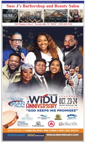 Section B * The Fayetteville Press Newspaper September/October 2025 Edition Suse J’s Barbershop and Beauty Salon 5411 Ramsey Street * Fayetteville, NC 28311 * (910) 822-3124