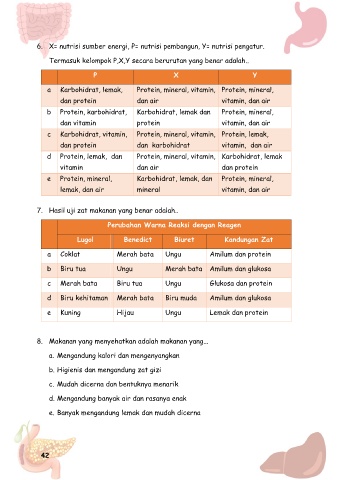 6. X= nutrisi sumber energi, P= nutrisi pembangun, Y= nutrisi pengatur.