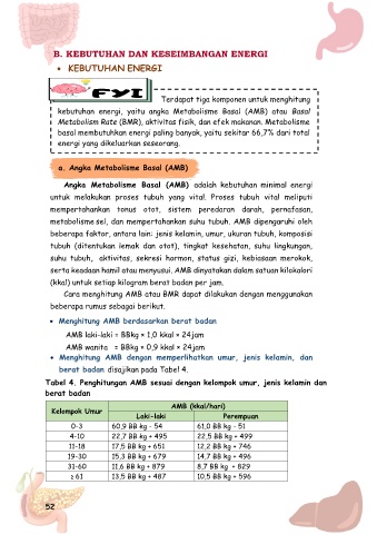 kebutuhan energi, yaitu angka Metabolisme Basal (AMB) atau Basal