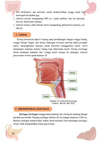 untuk membawa makanan dari rongga mulut menuju ke esofagus. Saluran