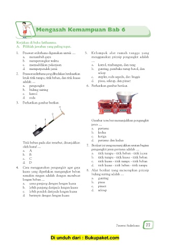 1. Pesawat sederhana digunakan untuk .... 5. Kelompok alat rumah tangga yang