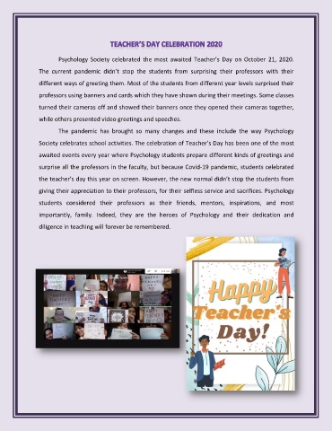 Psychology Society celebrated the most awaited Teacher’s Day on October 21, 2020.