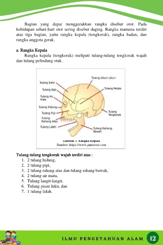 atas tiga bagian, yaitu rangka kepala (tengkorak), rangka badan, dan