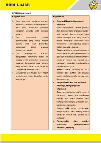pembelajaran yang digunakan serta materi rangkaian resistor seri, paralel,