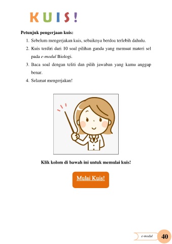 2. Kuis terdiri dari 10 soal pilihan ganda yang memuat materi sel