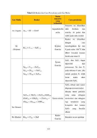 Tabel 5.3. Reaksi dan Cara Pereaksian pada Gas Mulia