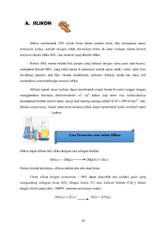 Unsur silkon dengan kemurnian ~ 98% dapat diperoleh dari reduksi pasir yang