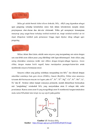 Silika gel adalah bentuk hidrat silicon dioksida, SiO 2 . xH 2O yang digunakan sebagai