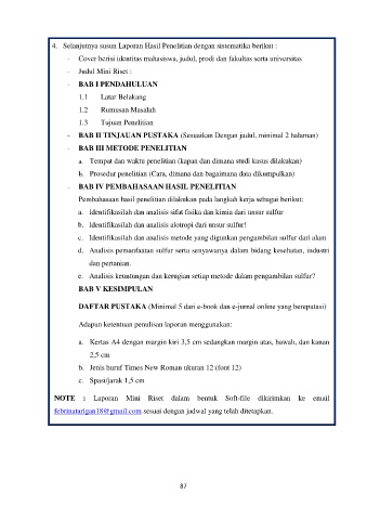 4. Selanjutnya susun Laporan Hasil Penelitian dengan sistematika berikut :