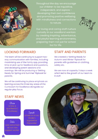 maximising use of the Famly app, providing parents with guidelines on clothing,