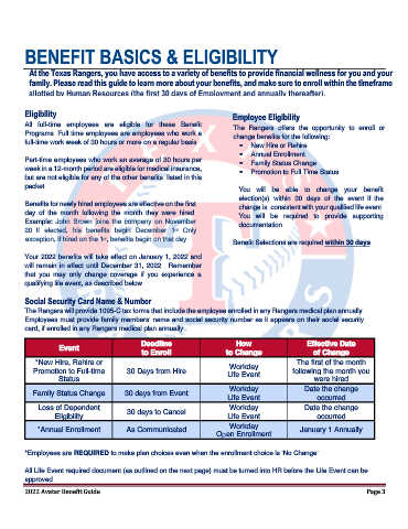 All full-time employees are eligible for these Benefit The Rangers offers the opportunity to enroll or