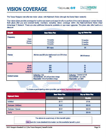 2023 Rangers Baseball LLC (the Texas Rangers) Benefit Guide Page 14