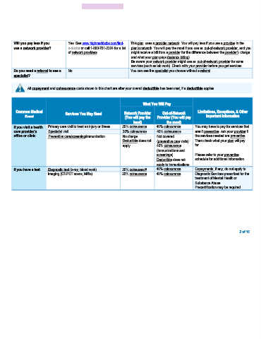 care provider’s Specialist visit 20% coinsurance 40% coinsurance aren’t preventive. Ask your provider if