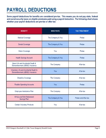 2023 Rangers Baseball LLC (the Texas Rangers) Benefit Guide Page 5