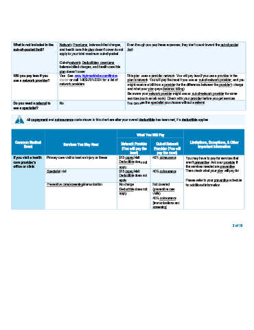 If you visit a health Primary care visit to treat an injury or illness $15 copay/visit 40% coinsurance You may have to pay for services that