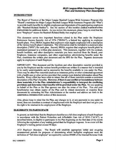 “Board”) maintains the Major League Baseball League-Wide Insurance Program (the “Plan”)
