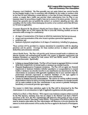Pregnancy And Childbirth. The Plan generally may not, under federal law, restrict benefits