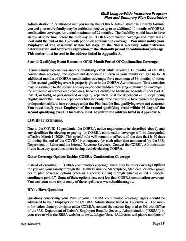 Administration to be disabled and you notify the COBRA Administrator in a timely fashion,
