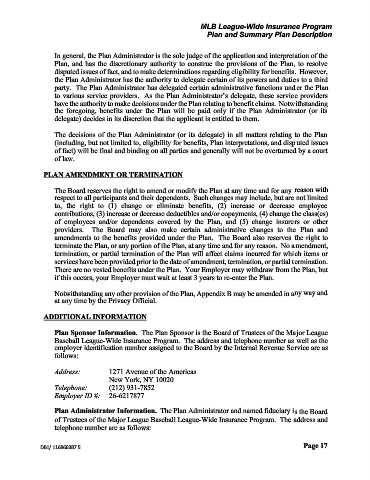 amendments to the benefits provided under the Plan. The Board also reserves the right to
