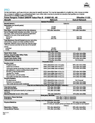 Texas Rangers Trident QHDHP Value Plan B 016587-22, -92 Effective 1/1/22