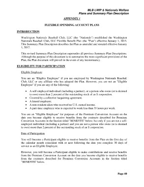 Nationals Baseball Club, LLC Flexible Benefit Plan (the "Plan") effective January 1, 2015.